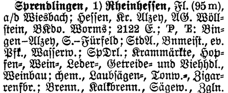Prov Rheinhess. - The Province shows which Province or State the place is located in. Sprendlingen is located in Rheinhess..