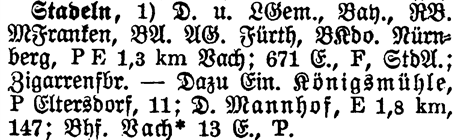 The list below are those places from the Meyers Gazetteer that are nearby to Stadeln