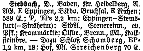 The list below are those places from the Meyers Gazetteer that are nearby to Stebbach