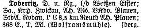 BKdo Plauen - The Bezirkskommando for Tobertitz is in Plauen. The Bezirkskommando is the District Military Command. You can look in the BKdo to find military records.