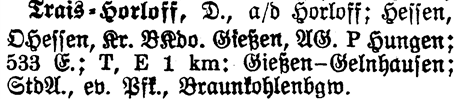 The list below are those places from the Meyers Gazetteer that are nearby to Trais-Horloff