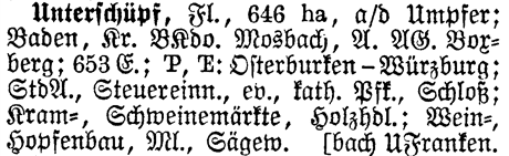 The list below are those places from the Meyers Gazetteer that are nearby to Unterschüpf