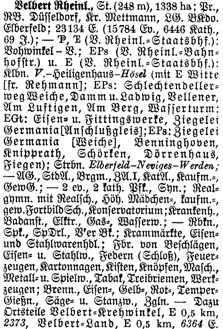 Prov Rheinl. - The Province shows which Province or State the place is located in. Velbert is located in Rheinland.