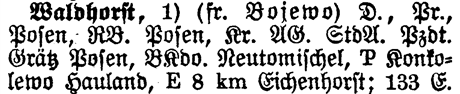Prov Posen - The Province shows which Province or State the place is located in. Waldhorst is located in Posen.