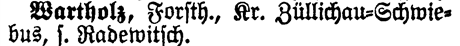 See Radewitsch - A See notation means the entry is dependent on another entry. In this case, Wartholz is dependent on Radewitsch, which should be consulted for additional information.