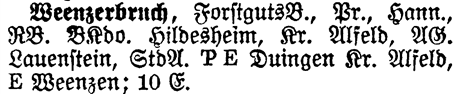 Prov Hann. - The Province shows which Province or State the place is located in. Weenzerbruch is located in Hannover.