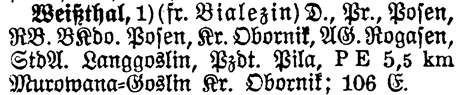 Prov Posen - The Province shows which Province or State the place is located in. Weissthal is located in Posen.