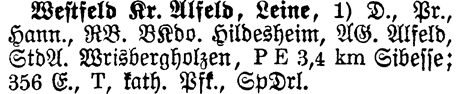 Westfeld Kr. Alfeld, Leine, Alfeld, Hildesheim, Hannover, Preussen