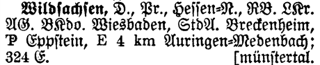 Prov Hess. -N. - The Province shows which Province or State the place is located in. Wildsachsen is located in Hessen-Nassau.