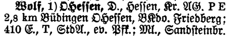 Kr Büdingen OHessen - The Kreis for Wolf is Büdingen OHessen. A Kreis is a government district (similar to a U.S. county).