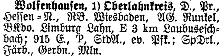 Wolfenhausen, Oberlahnkreis, Wiesbaden, Hessen-Nassau, Preussen