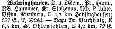 Type D. u. LGem. - Woltringhausen is a Dorf und Landgemeinde (Village and Rural Community).