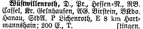 Prov Hess. -N. - The Province shows which Province or State the place is located in. Wüstwillenroth is located in Hessen-Nassau.