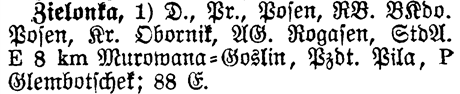 Prov Posen - The Province shows which Province or State the place is located in. Zielonka is located in Posen.
