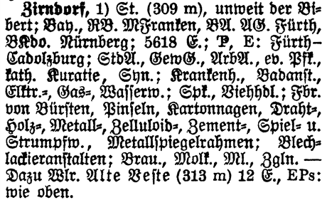 The list below are those places from the Meyers Gazetteer that are nearby to Zirndorf